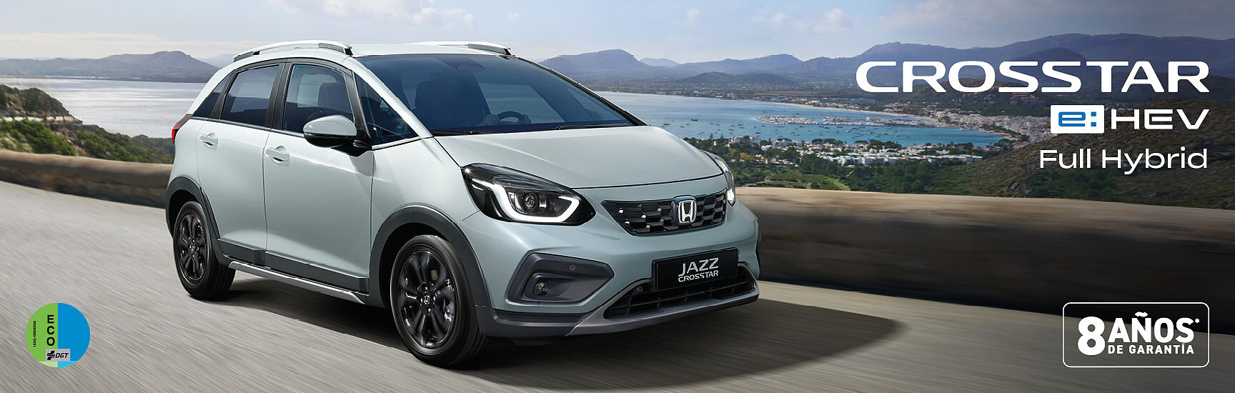 8) PVPR en Península y Baleares para JAZZ Crosstar: 25.050,00€ financiando a través del programa Honda Options con permanencia mínima de 24 meses, o 26.750,00€ pagando al contado. Entrada 8.037,20€. Gastos de apertura financiados un 1,50% siendo 255,19€. Importe total del crédito 17.267,99€ en un plazo de 37 meses, 36 cuotas de 130,00€ y 1 cuota final de 16.711,00€. Importe total adeudado 21.391,00€. Intereses 4.123,01€. Coste del crédito 4.378,20€. Sistema de amortización francés. Precio total a plazos 29.428,20€. TIN 7,89%. TAE 8,78%. Oferta financiera de Honda Bank GmbH S.E. sujeta a aprobación y válida hasta el 30/04/2026. *8 años de garantía (3 años de garantía original + 5 de garantía comercial activada por servicio) según condiciones contractuales a consultar a través de la Red Honda. No incluye pintura metalizada ni gastos de matriculación. Consulta coberturas/exclusiones en honda.es.